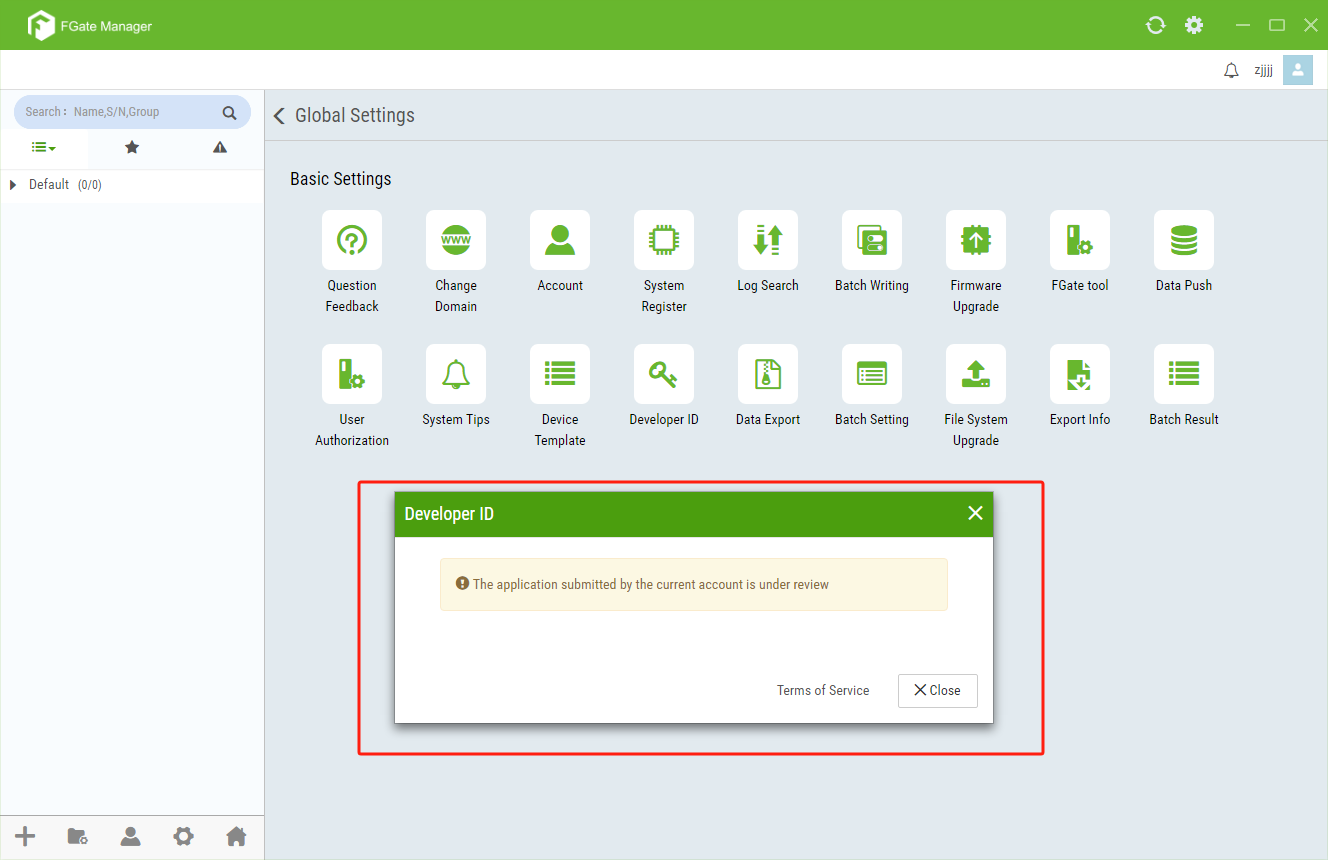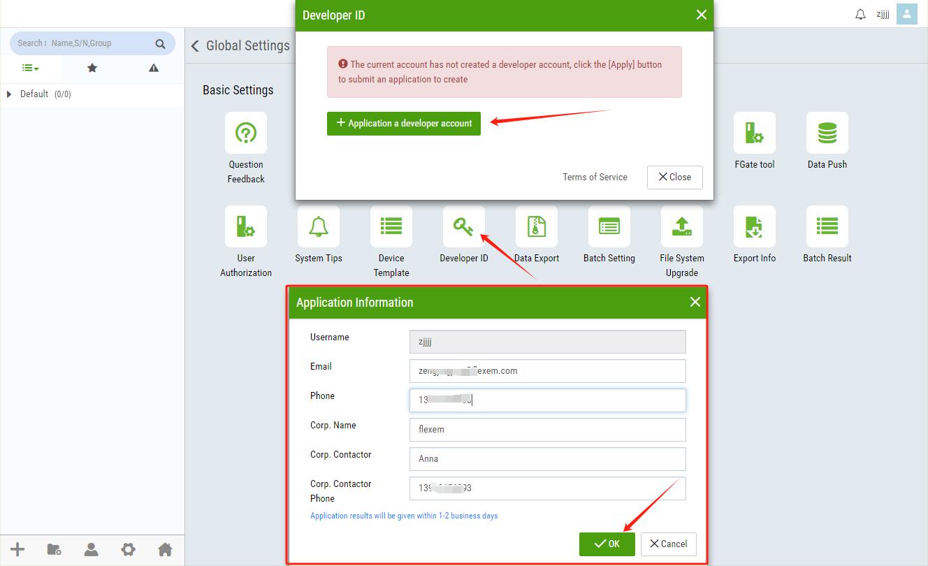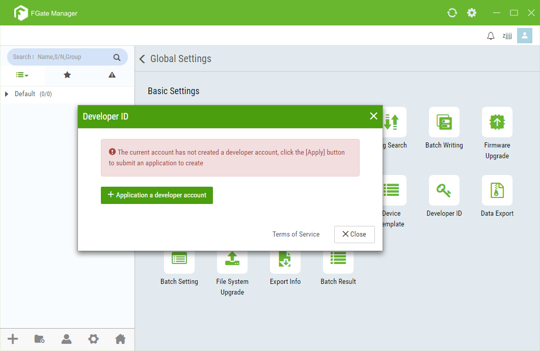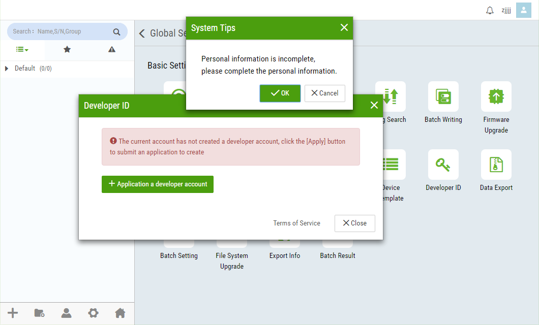 Note: The prerequisite for applying for a developer account is to obtain box data using an account to log in to the Manager platform.